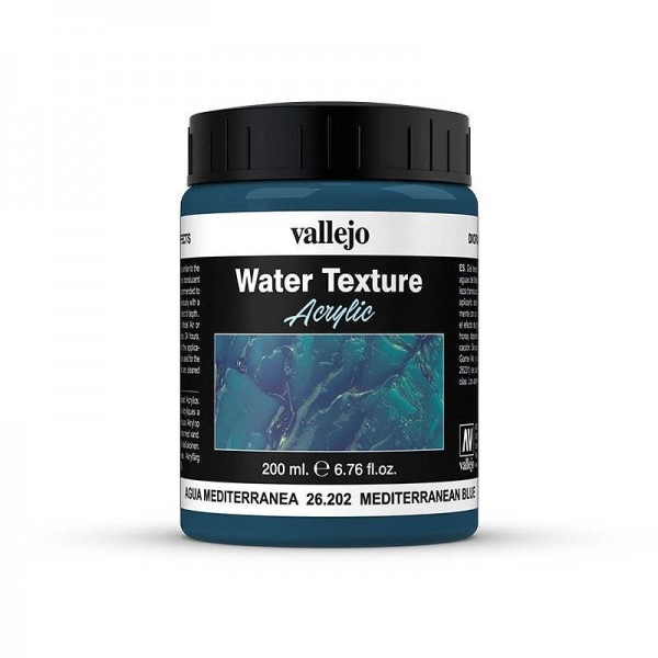 Gel denso azul, de matiz similar a las aguas del Mediterráneo. Debido a la naturaleza translucida del producto se recomienda aplicarlo sobre una base pintada previamente con un color más oscuro para realzar el efecto de profundidad. Seca en unas 24 horas, dependiendo del volumen de la aplicación.
